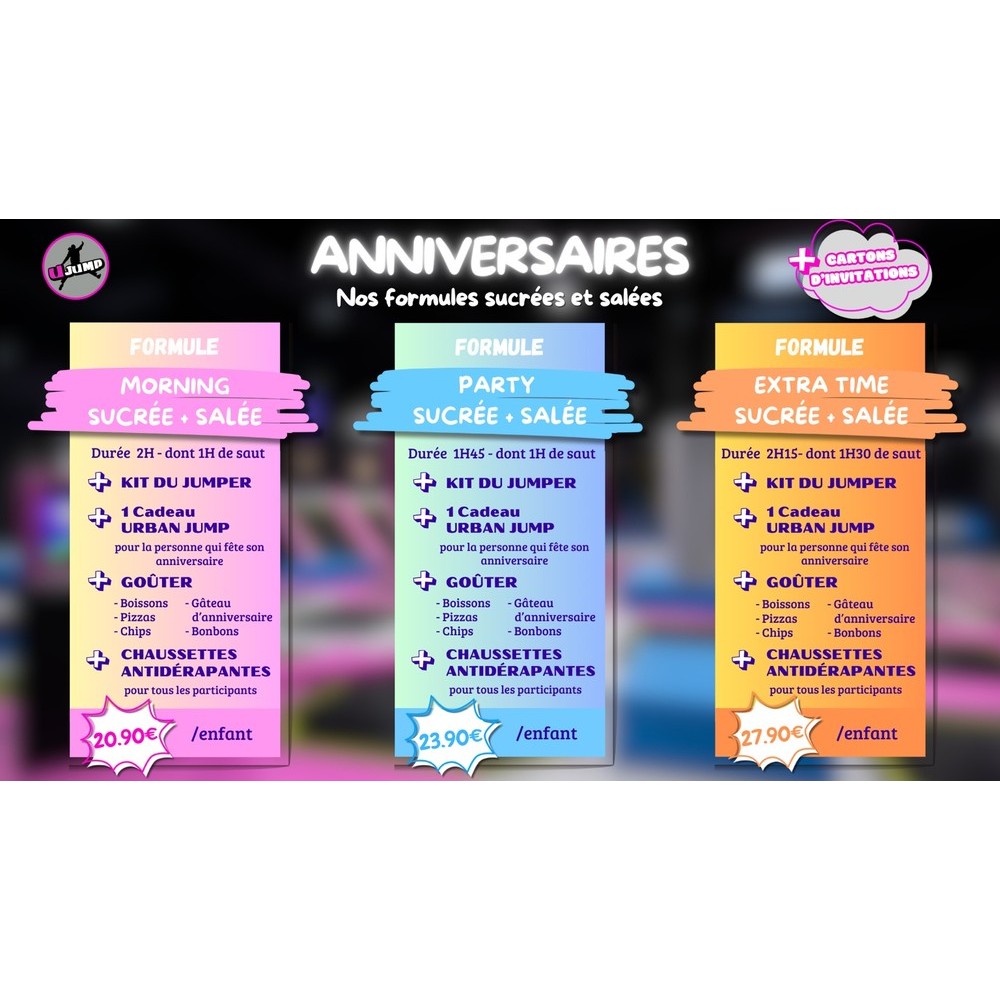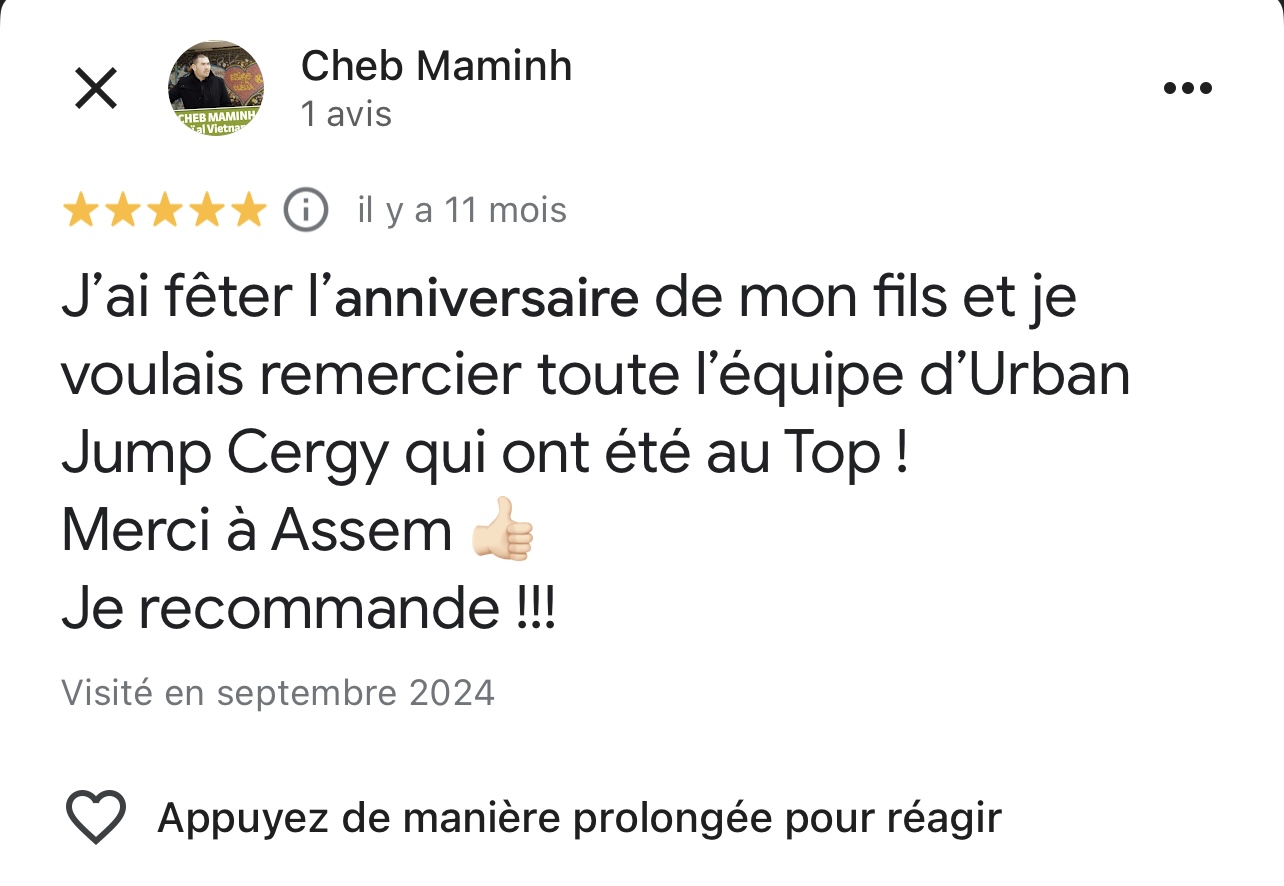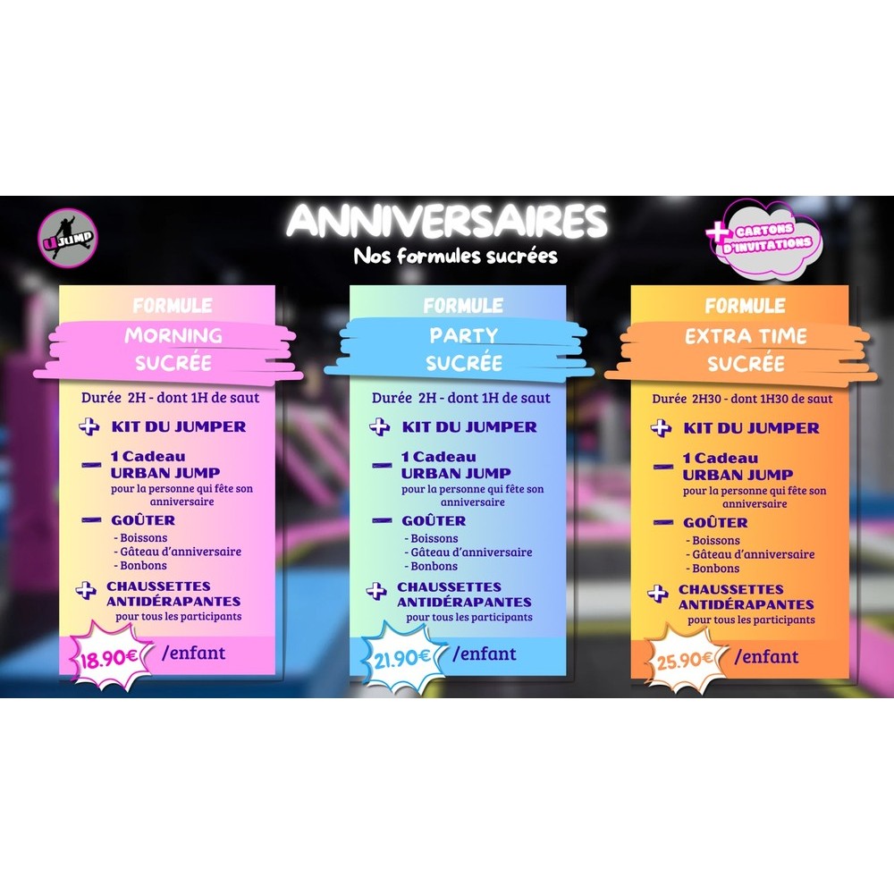 Chez Urban Jump CERGY, célébrez l'anniversaire de votre enfant dans un cadre fun et sécurisé.